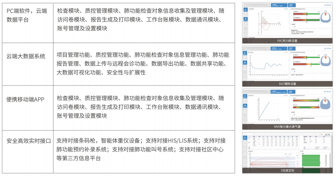 完全滿足"國(guó)家基層呼吸疾病早期篩查干預(yù)能力"項(xiàng)目的軟件、系統(tǒng)及云端平臺(tái)要求;擁有多中心、分布式、動(dòng)態(tài)擴(kuò)展平臺(tái)架構(gòu),可支持擴(kuò)展為省、市、縣、醫(yī)院的多中心聯(lián)合檢查及分級(jí)診療平臺(tái);可接入其它設(shè)備數(shù)據(jù):如德國(guó)耶格大肺數(shù)據(jù)、呼出氣一氧化氮(FENO)數(shù)據(jù)、血?dú)夥治鰞x數(shù)據(jù)等;可與醫(yī)聯(lián)體、第三方信息平臺(tái)數(shù)據(jù)對(duì)接。